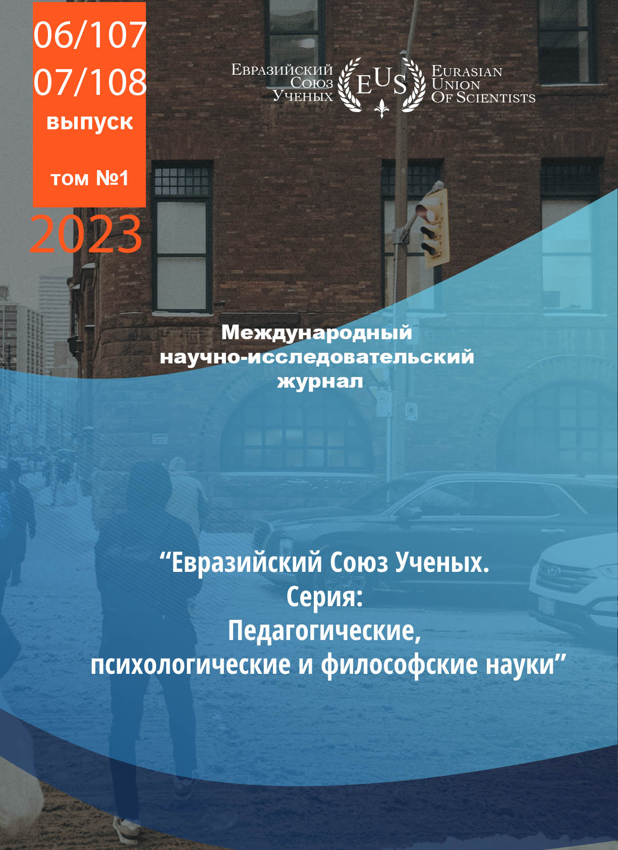 ЕВРАЗИЙСКИЙ СОЮЗ УЧЕНЫХ. СЕРИЯ: ПЕДАГОГИЧЕСКИЕ, ПСИХОЛОГИЧЕСКИЕ И ФИЛОСОФСКИЕ НАУКИ. ТОМ 1 №04 (105) (2023)