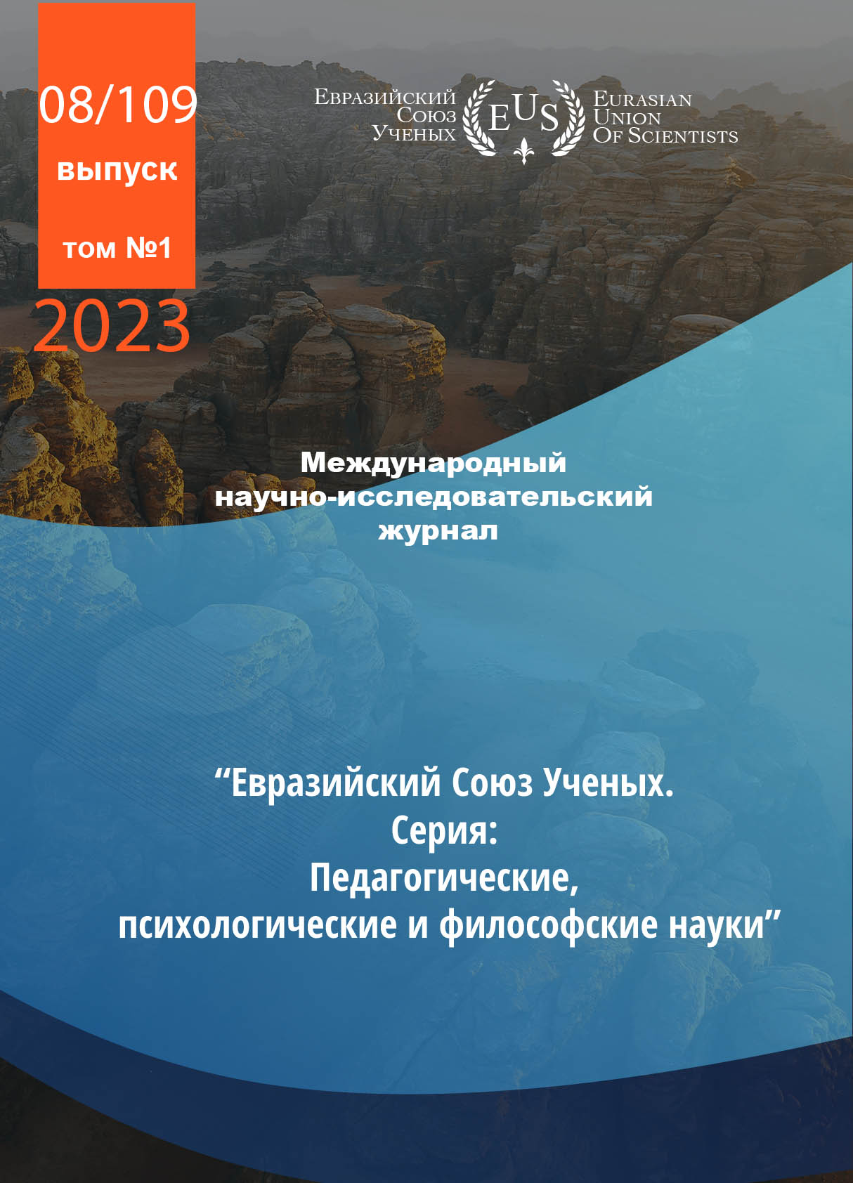 ЕВРАЗИЙСКИЙ СОЮЗ УЧЕНЫХ. СЕРИЯ: ПЕДАГОГИЧЕСКИЕ, ПСИХОЛОГИЧЕСКИЕ И ФИЛОСОФСКИЕ НАУКИ. ТОМ 1 № 08(109) (2023)