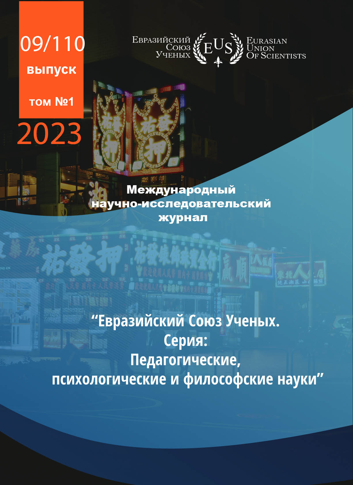 ЕВРАЗИЙСКИЙ СОЮЗ УЧЕНЫХ. СЕРИЯ: ПЕДАГОГИЧЕСКИЕ, ПСИХОЛОГИЧЕСКИЕ И ФИЛОСОФСКИЕ НАУКИ. ТОМ 1 № 09(110) (2023)