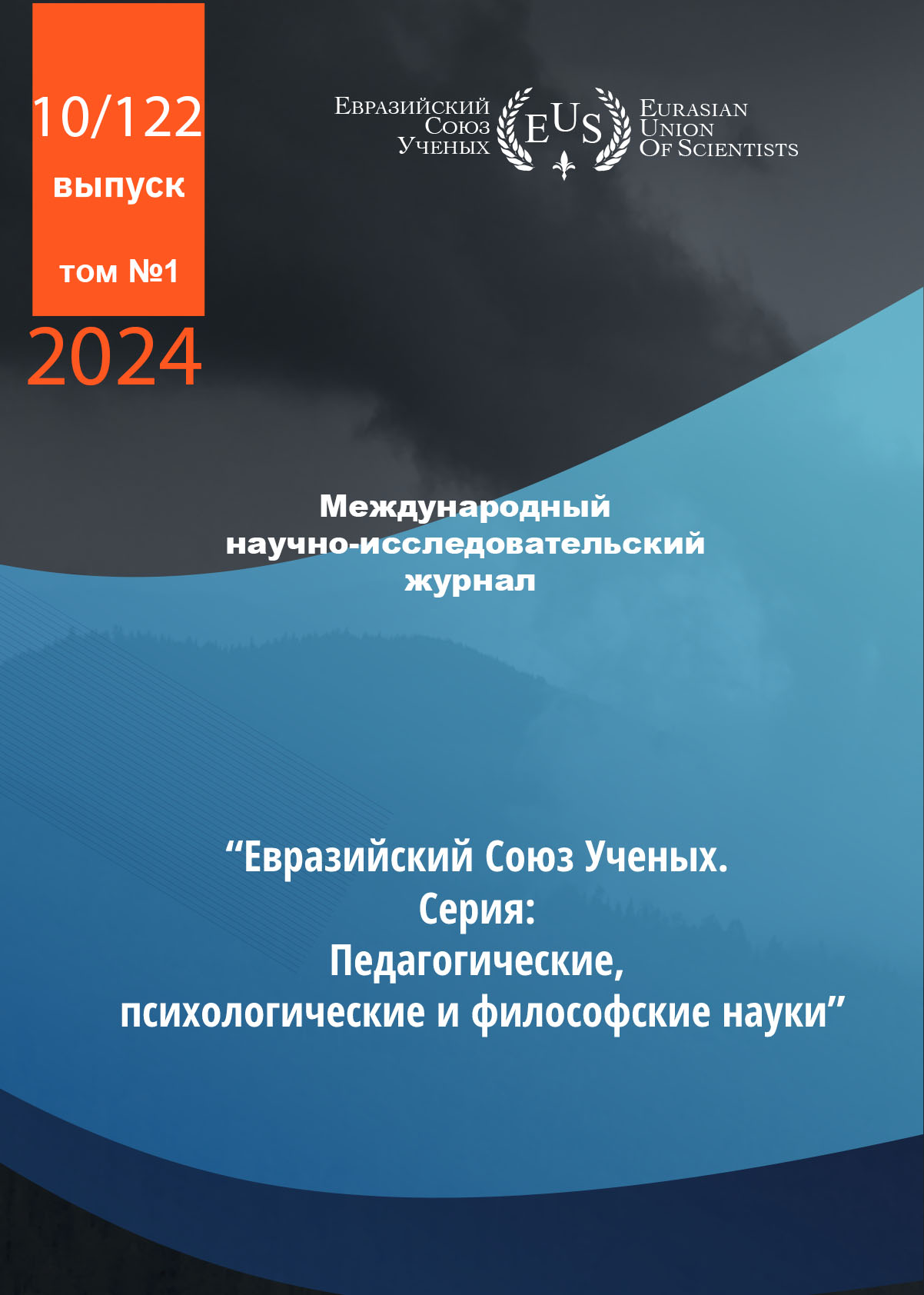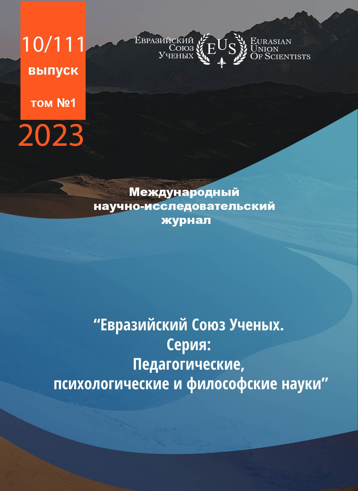 ЕВРАЗИЙСКИЙ СОЮЗ УЧЕНЫХ. СЕРИЯ: ПЕДАГОГИЧЕСКИЕ, ПСИХОЛОГИЧЕСКИЕ И ФИЛОСОФСКИЕ НАУКИ. ТОМ 1 № 10(111) (2023)