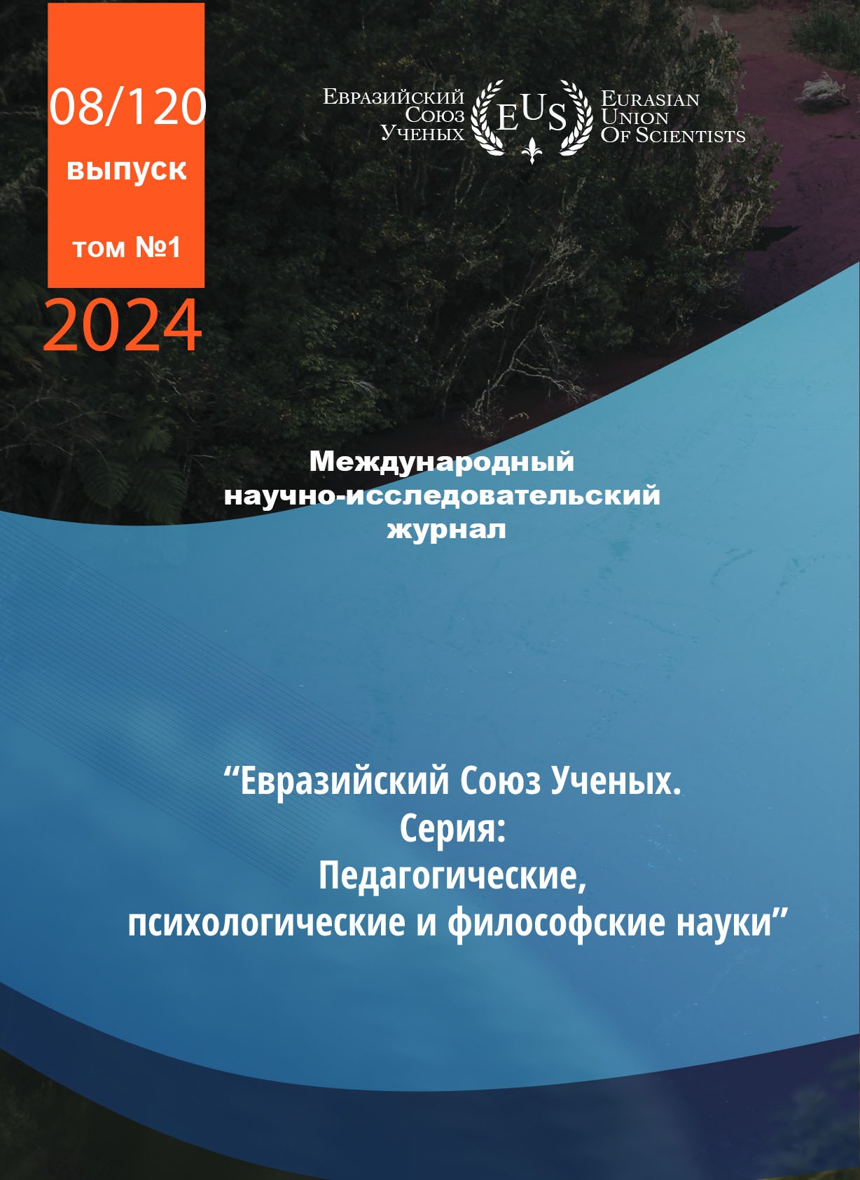 ЕВРАЗИЙСКИЙ СОЮЗ УЧЕНЫХ. СЕРИЯ: ПЕДАГОГИЧЕСКИЕ, ПСИХОЛОГИЧЕСКИЕ И ФИЛОСОФСКИЕ НАУКИ. ТОМ 1 № 08 (120) (2024)