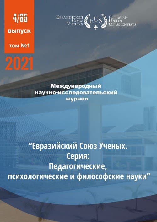EURASIAN UNION OF SCIENTISTS. SERIES:PEDAGOGICAL, PSYCHOLOGICAL AND PHILOSOPHICAL SCIENCES.. VOLUME 1 №4 (85) (2021)