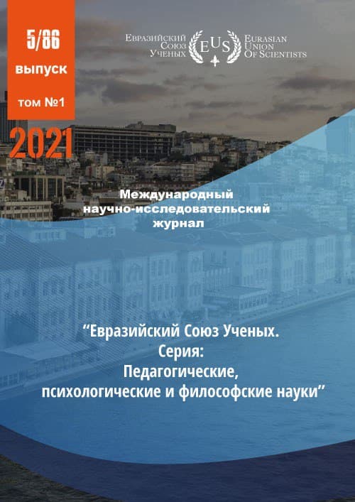 EURASIAN UNION OF SCIENTISTS. SERIES: PEDAGOGICAL, PSYCHOLOGICAL AND PHILOSOPHICAL SCIENCES.. VOLUME 1 №5 (86) (2021)
