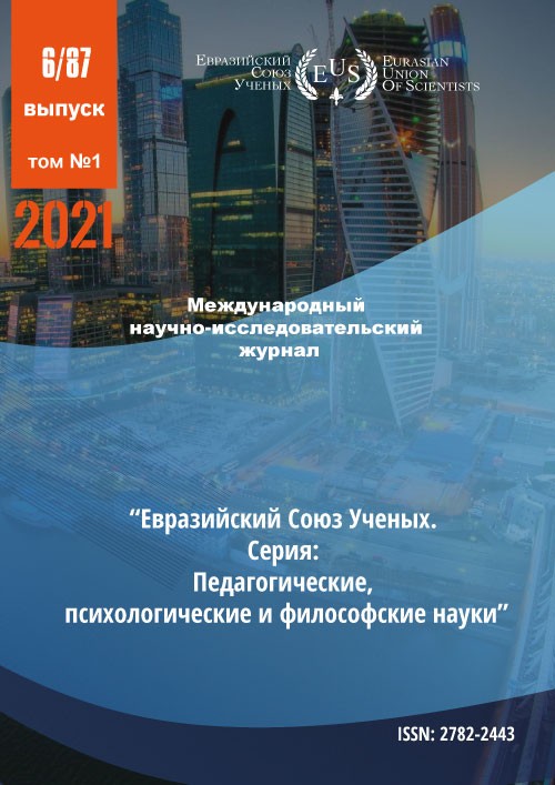 EURASIAN UNION OF SCIENTISTS. SERIES: PEDAGOGICAL, PSYCHOLOGICAL AND PHILOSOPHICAL SCIENCES. VOLUME 1 №6 (87) (2021)