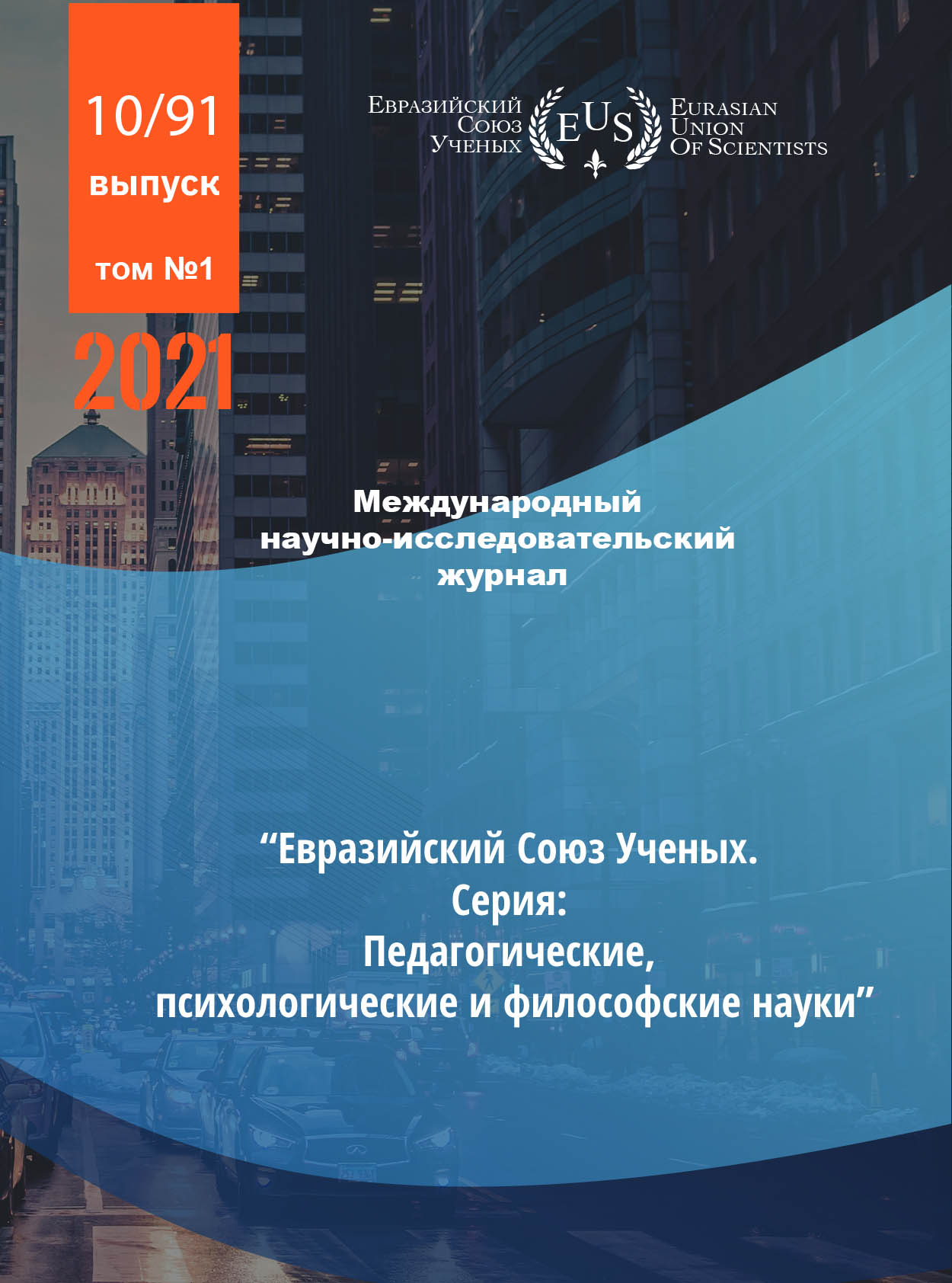 EURASIAN UNION OF SCIENTISTS. SERIES: PEDAGOGICAL, PSYCHOLOGICAL AND PHILOSOPHICAL SCIENCES. VOLUME 1 №10 (91) (2021)
