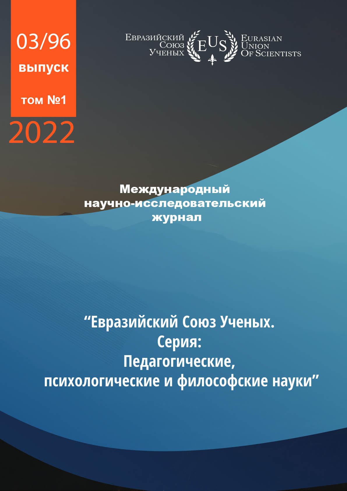 EURASIAN UNION OF SCIENTISTS. SERIES: PEDAGOGICAL, PSYCHOLOGICAL AND PHILOSOPHICAL SCIENCES. VOLUME 1 №01 (94) (2022)