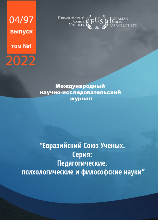 EURASIAN UNION OF SCIENTISTS. SERIES: PEDAGOGICAL, PSYCHOLOGICAL AND PHILOSOPHICAL SCIENCES. VOLUME 1 №04 (97) (2022)