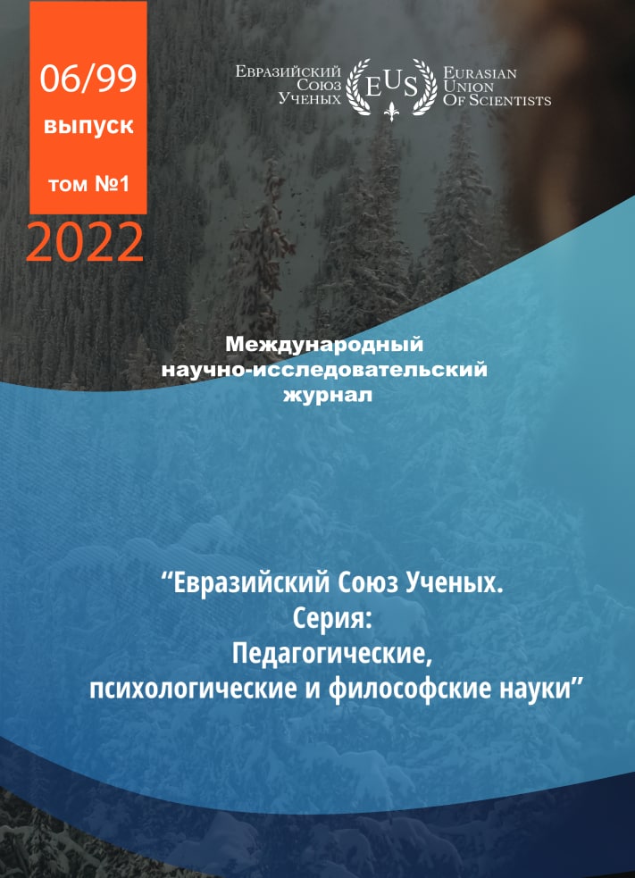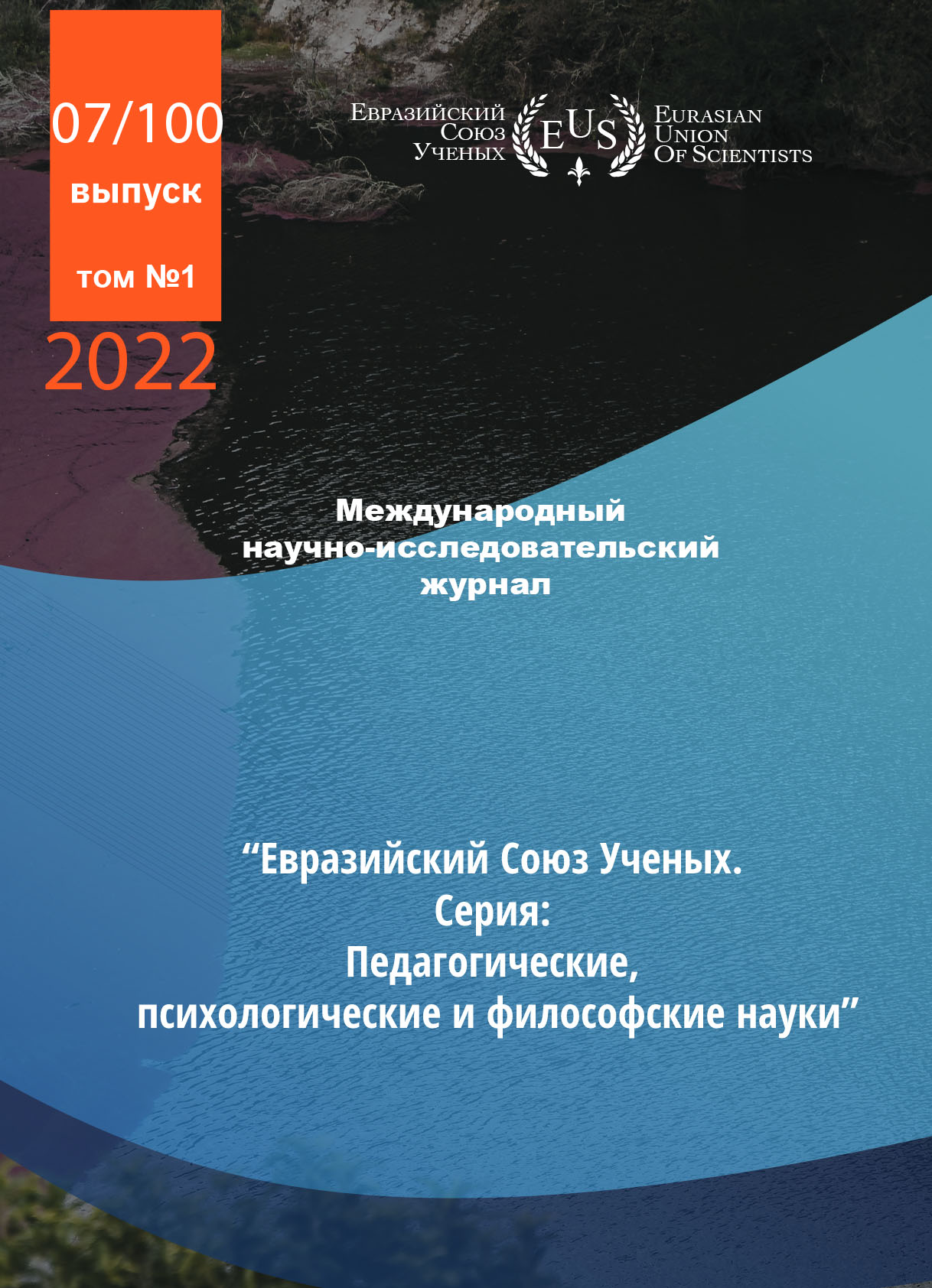 EURASIAN UNION OF SCIENTISTS. SERIES: PEDAGOGICAL, PSYCHOLOGICAL AND PHILOSOPHICAL SCIENCES. VOLUME 1 №07 (100) (2022)