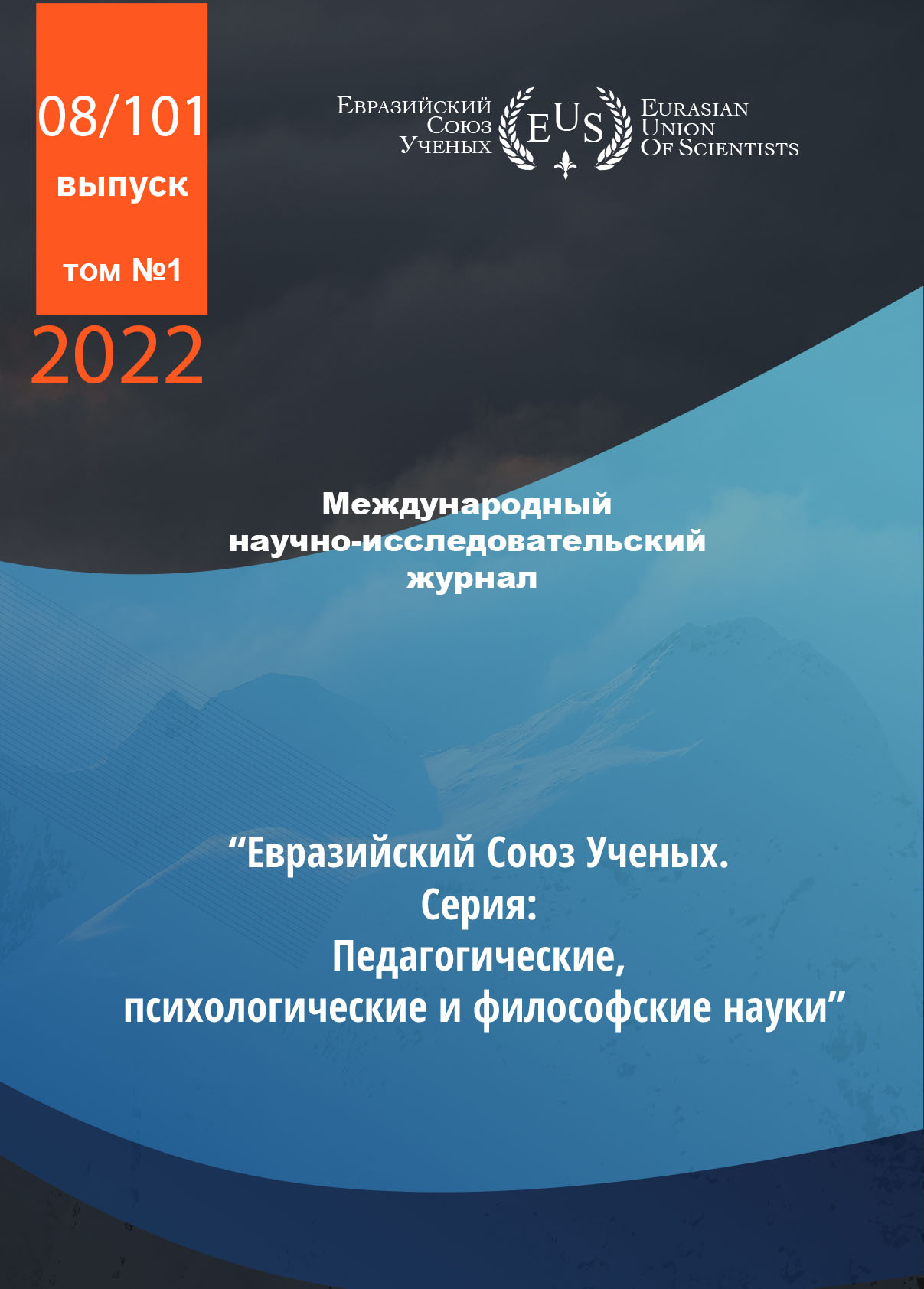 EURASIAN UNION OF SCIENTISTS. SERIES: PEDAGOGICAL, PSYCHOLOGICAL AND PHILOSOPHICAL SCIENCES. VOLUME 1 №08 (101) (2022)